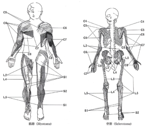 どこの神経根が障害を起こしているかは症状の部位から予想できます。