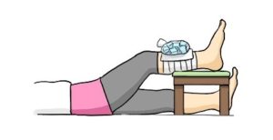 Elevation(挙上):心臓よりも高い位置に患部を置き腫れ、炎症を抑える