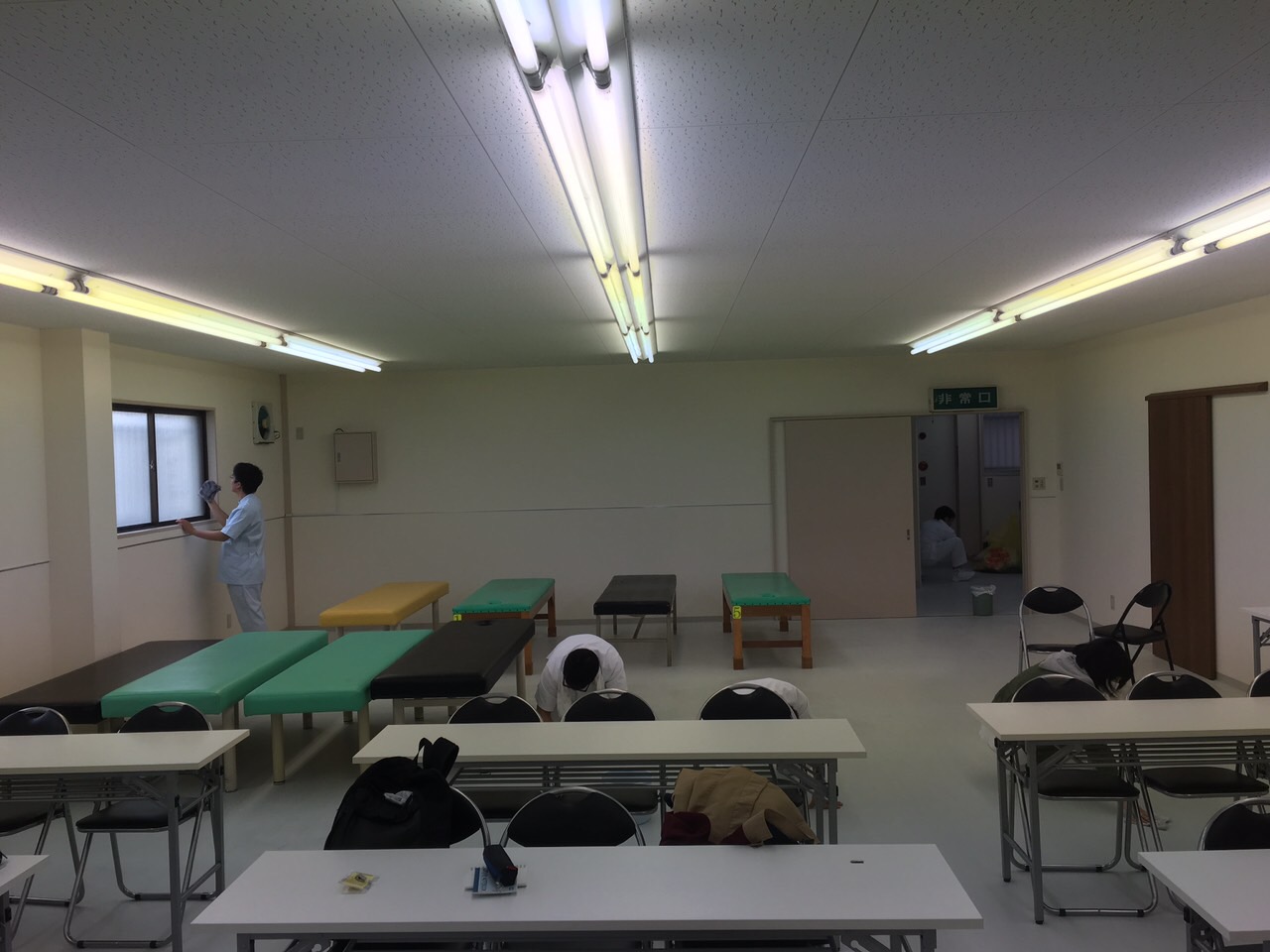 研修センターにつくとすでに新人の皆さんが掃除をはじめていました。
