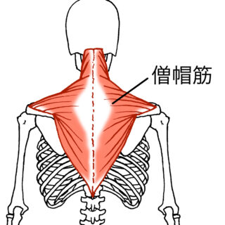 • 頚から背中にかけての大きな筋肉である僧帽筋(そうぼうきん)