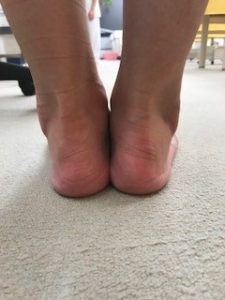 踵の角度が横へ倒れてしまうと扁平足が進行していきます。そうならないように一緒に頑張ってもらっています。
