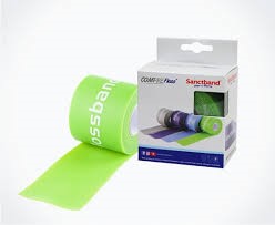 特殊な天然ゴム線維で末梢から中枢にかけてバンドを巻き、一気に開放を行うことにより血液の循環を促進させます。また、バンドで摩擦力を利用して皮下と筋膜の癒着をはがすます。