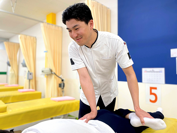 そして骨盤に付着する筋肉を中心に、原因となる部位を直接指圧したり、関節運動で悪い癖を取り除いていき、姿勢不良で力の入り過ぎている部位に対しては、ストレッチや姿勢指導を行います。また正しく使えていない筋肉に対して、筋力強化のためのトレーニングを行うこともあります。