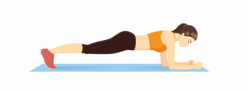 体幹をまっすぐにすることを意識しすぎると、腕や脚などの体幹とは別の部分に負荷がかかってしまうため、実際は体幹が一直線になるよりも腹筋を少し縮めるくらいが最も体幹前面に効きます。