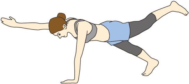 2. 右手と左足を地面と平行になるまで持ち上げる