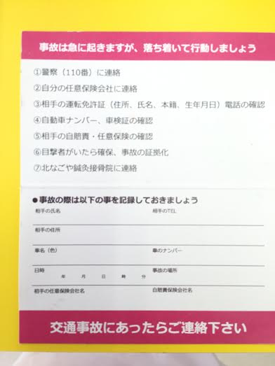 車内の中、車検証と一緒に置いておいてもらうと安心です