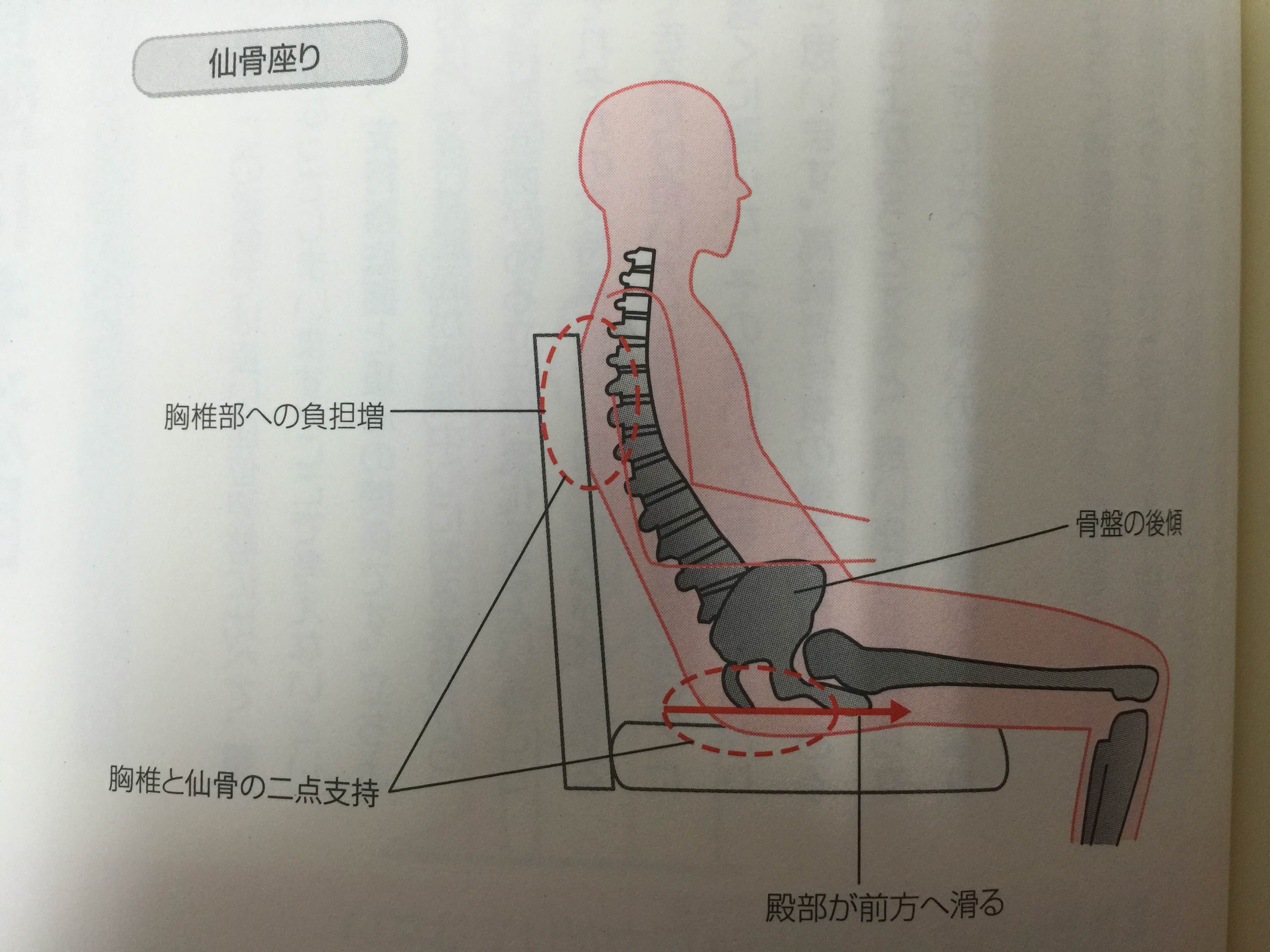 例えば硬いシートの背もたれがあるイスに座っていても少し手前に