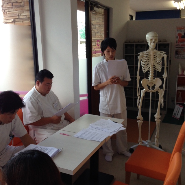 受付スタッフも参加して頂き、 実際に患者さんに説明することを心がけたプレゼンとなりました。 また施術者も知識を再確認出来ることとが出来ました。