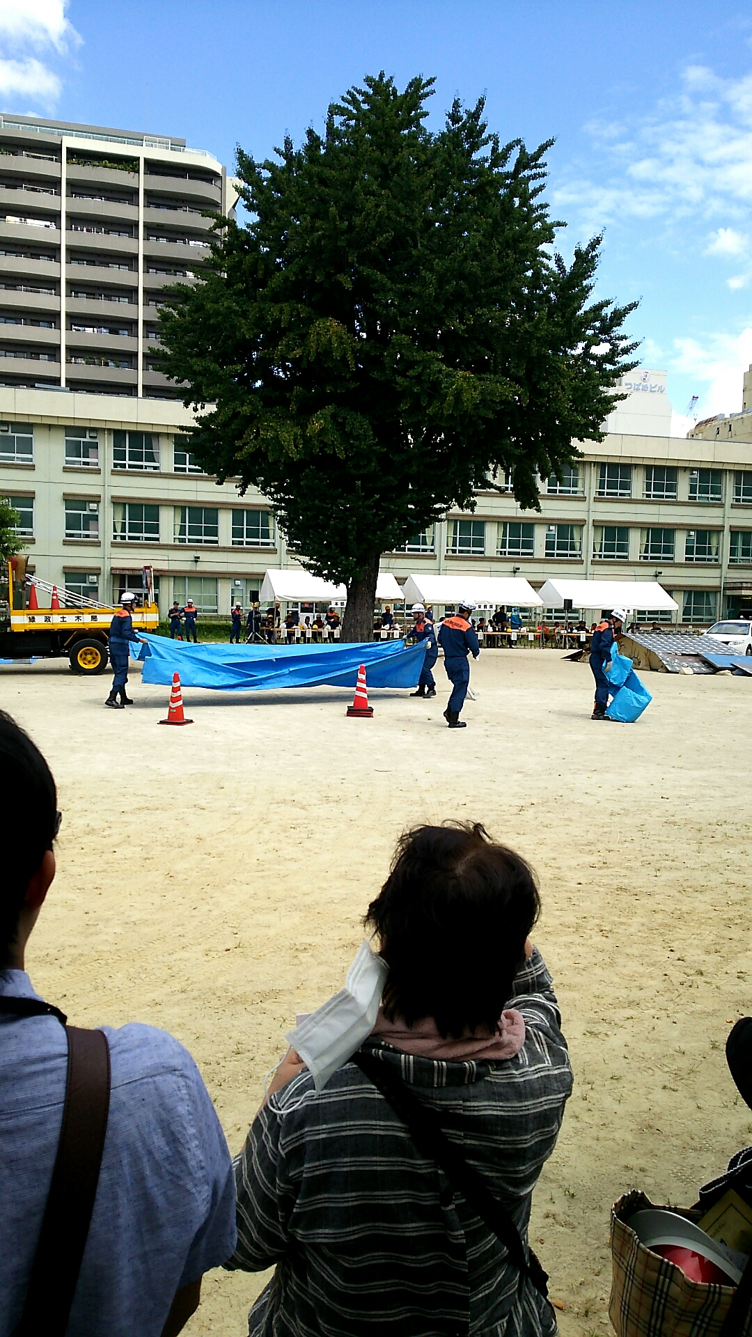 煙の中を歩いたり、簡易トイレの説明や建物が倒壊した際に消防隊の方々の訓練があったり、炊き出しを頂いたり、などなど2時間にわたり訓練しました。