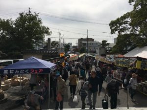 屋台がたくさん出ていて、多くの人で賑わっていました。
