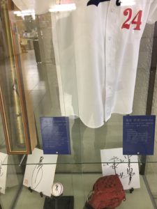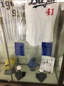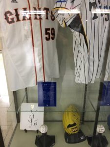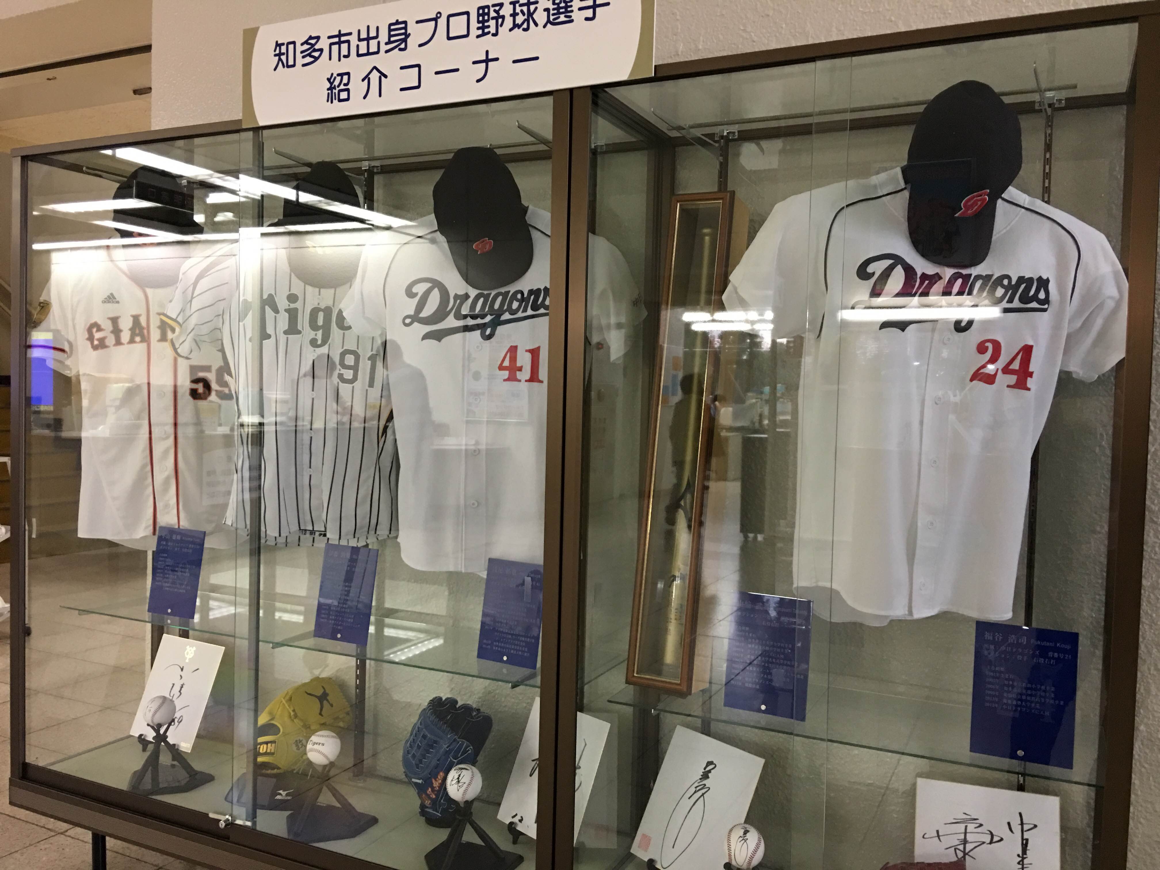 転入手続きをするため知多市役所へ行ってみると、知多市出身のプロ野球選手のサインとユニフォームが展示してありました。