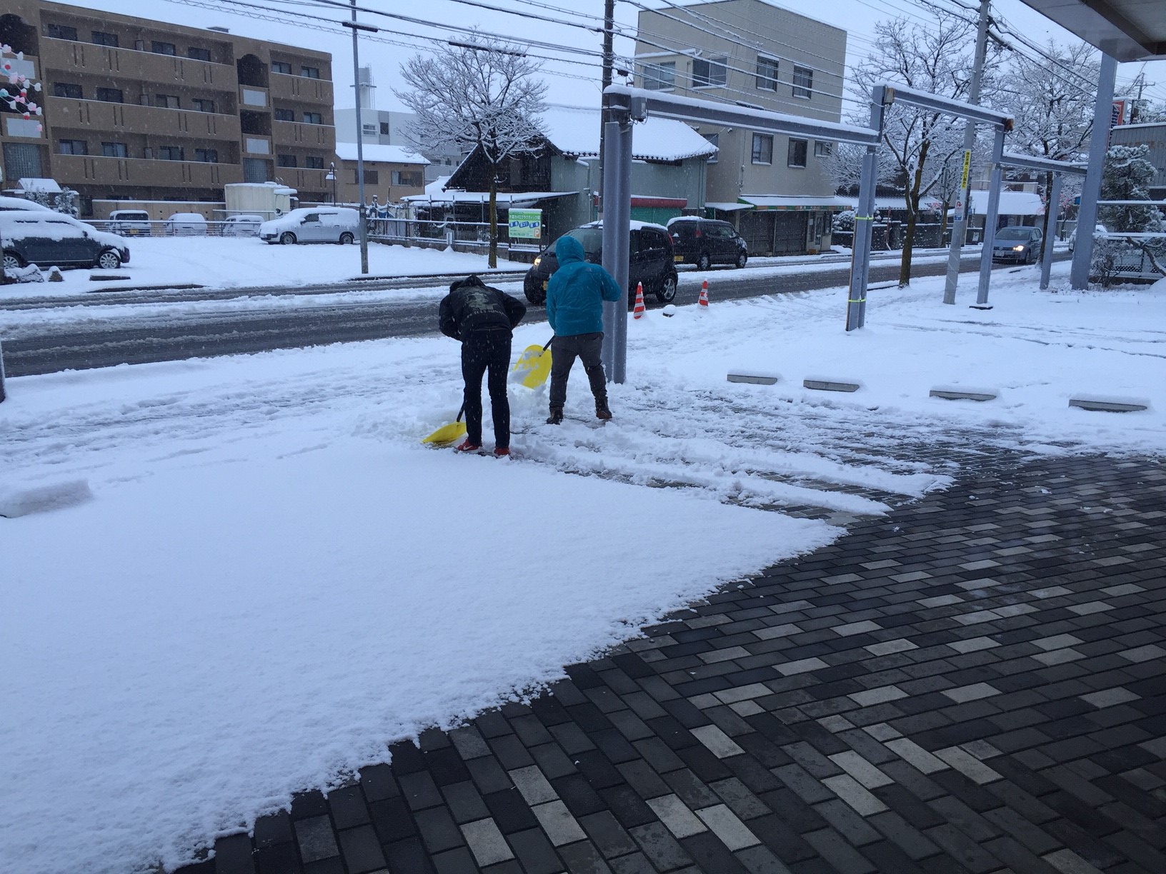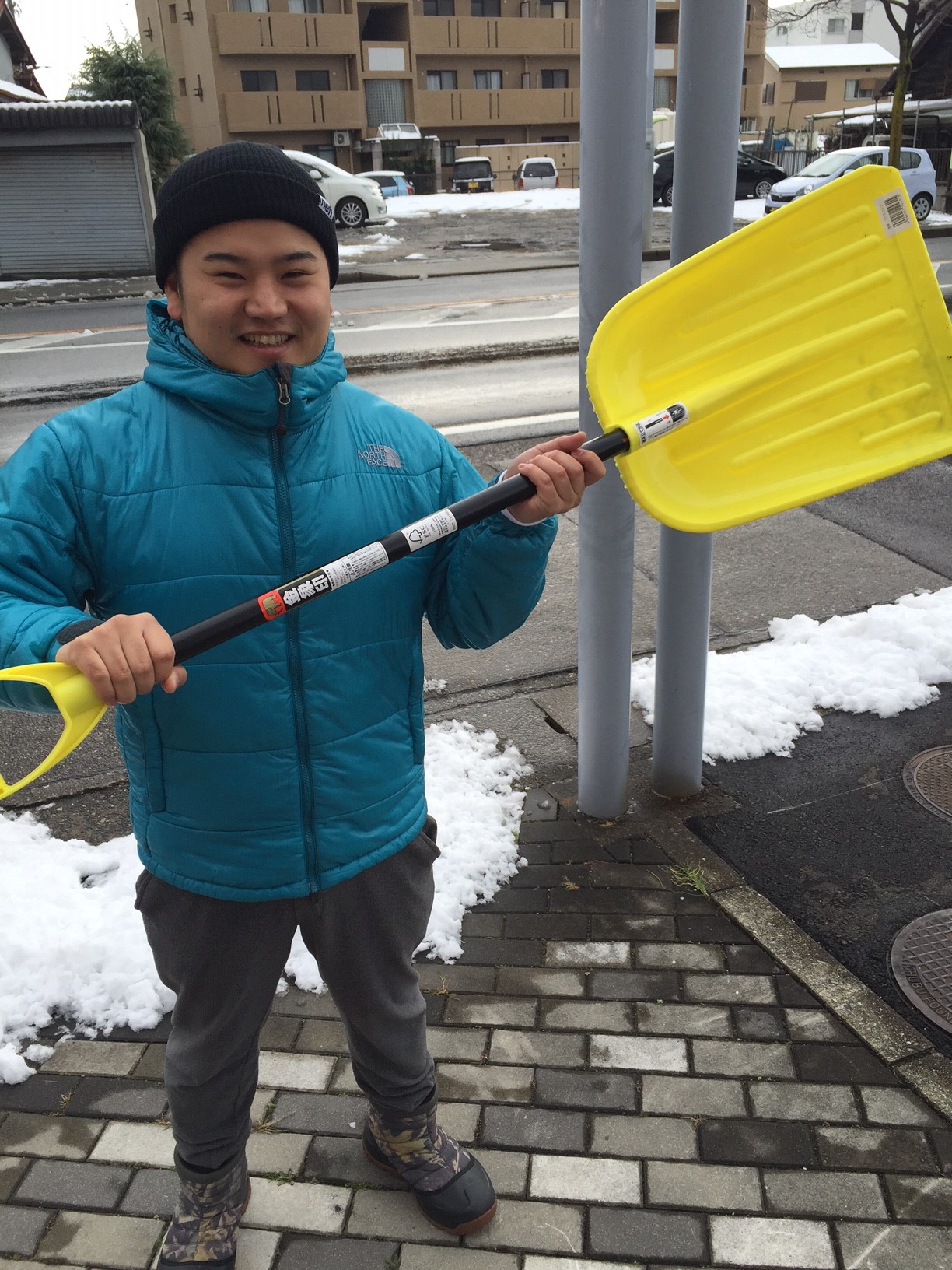 自宅にある雪かき用のスコップを車に積んで、準備万端で出勤しました。