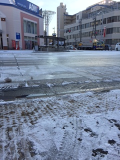 今日はアイスバーンになりやすい日なので、車も歩行者も自転車も滑っていることがよくあります。