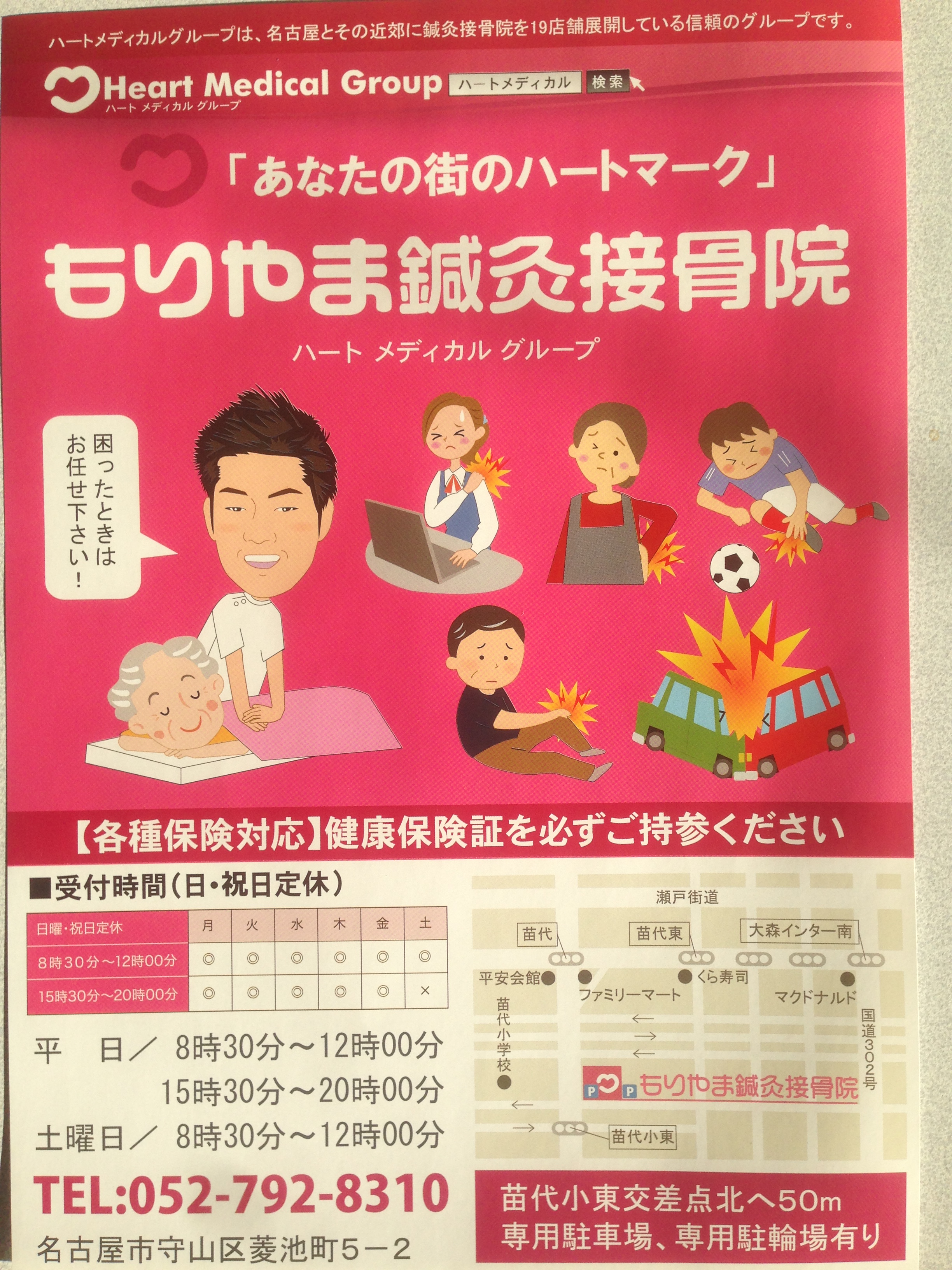 こんにちは。もりやま鍼灸接骨院(名古屋市守山区)の矢澤です