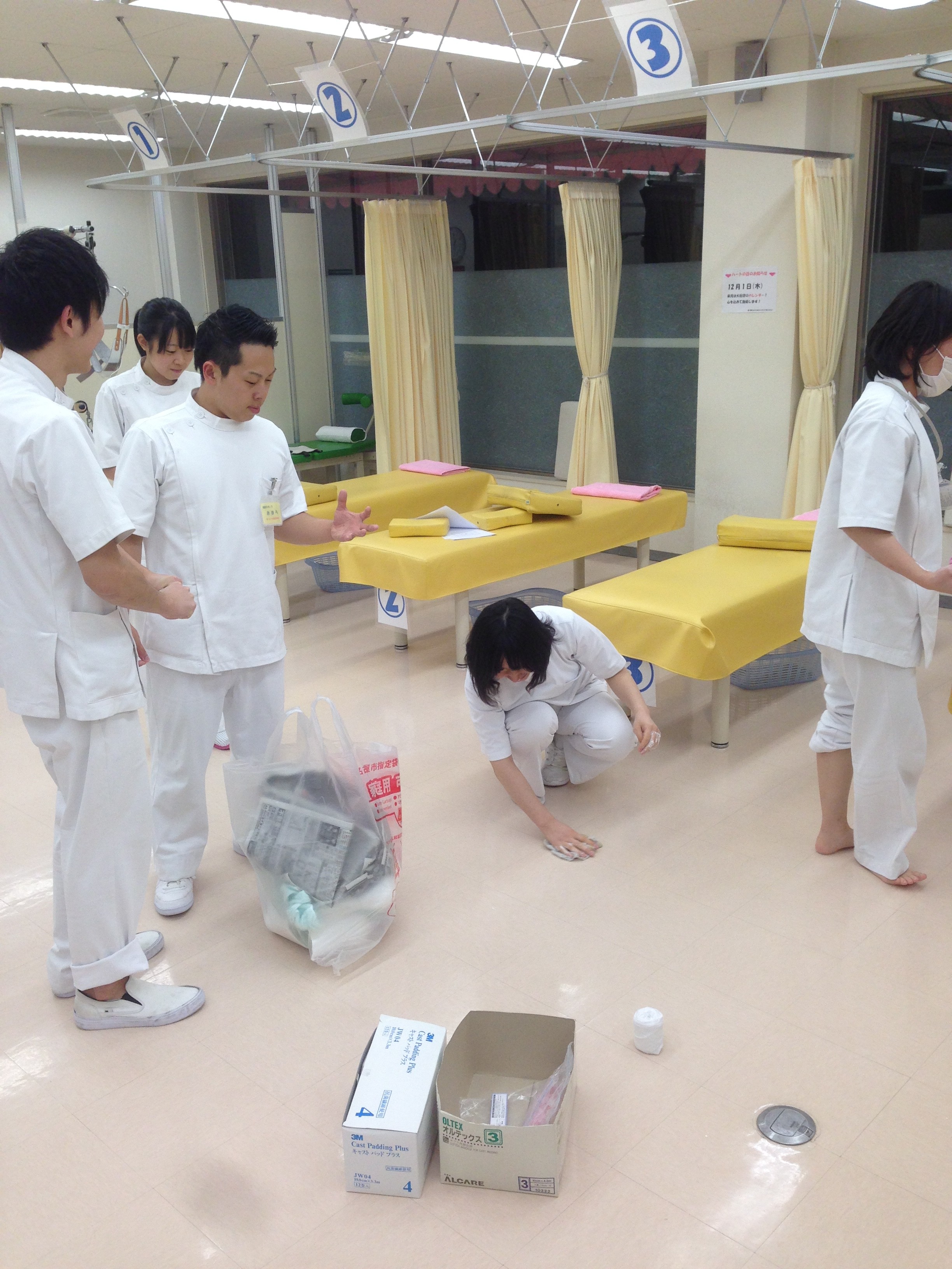 の4院が集まり足関節捻挫のギプス固定の練習を行いました。