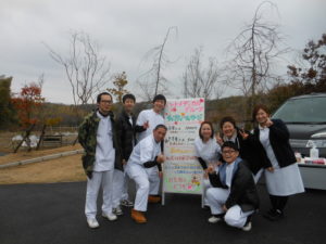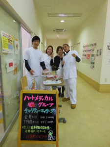この日は、快晴とはいきませんでしたが、朝には雨が上がり700人以上の方が来場されました。ハートメディカルのメンバーは、手作りの看板や、チラシを来場された方に配りました。