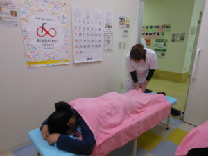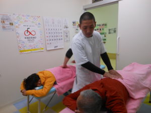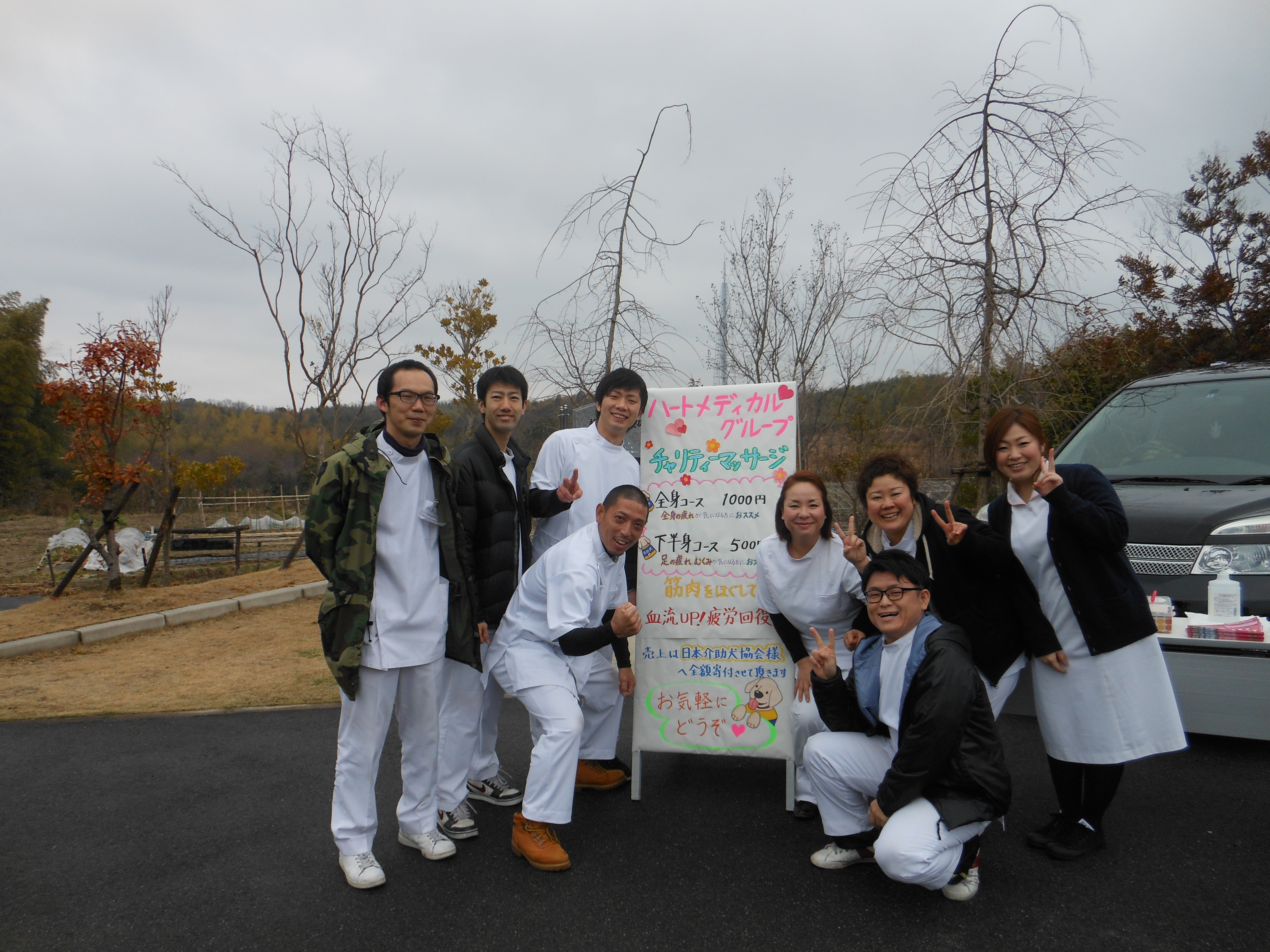 ハートメディカルグループのメンバーは、2つのブースに分かれ合計5台のベッドで、来場された方にマッサージの施術を行い、売上金の全額を日本介助犬協会さんに寄付をさせていただくという、普段の仕事での技術を生かした内容のボランティアです。