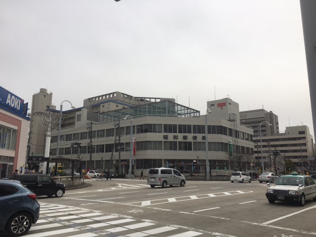 印象に残る大きな交差点。昭和郵便局が存在感があります。