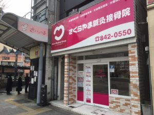 丁度対角線上の反対側、地下鉄番8出口から徒歩10秒のところに「さくらやま鍼灸接骨院」はあります。
