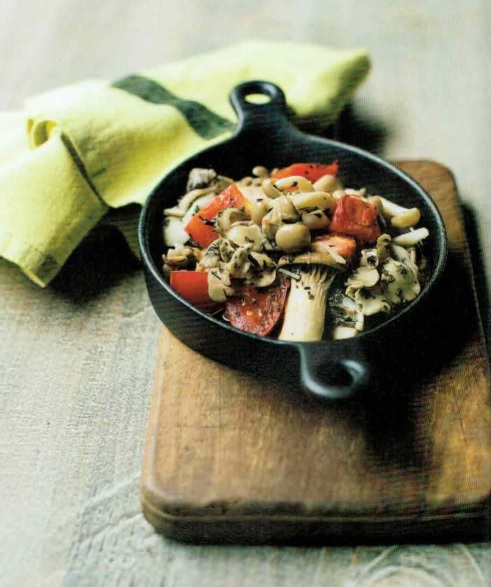 “きのことトマトのガーリックオイル蒸し”