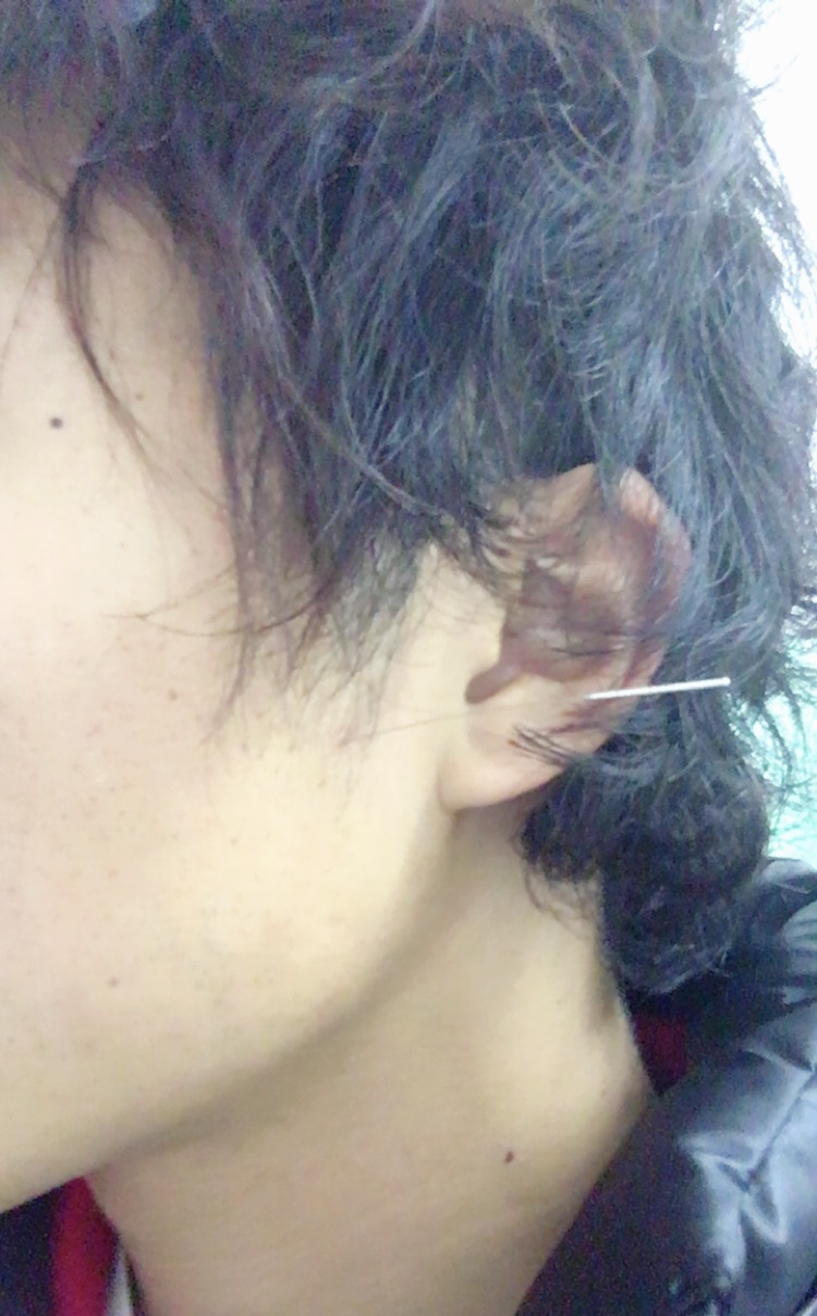 ご飯たべるのも一苦労なので、自分でハリ治療です!