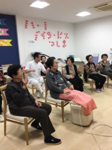 個別機能訓練の疲れも見せず最後は皆さんで口腔体操を行いました