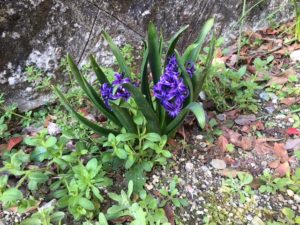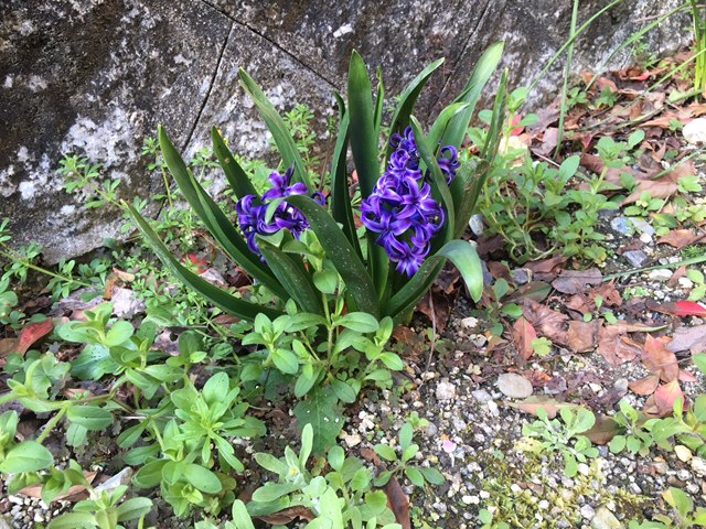 反対側に目をやると今度は妻が植えたヒヤシンスがさきはじめていました。