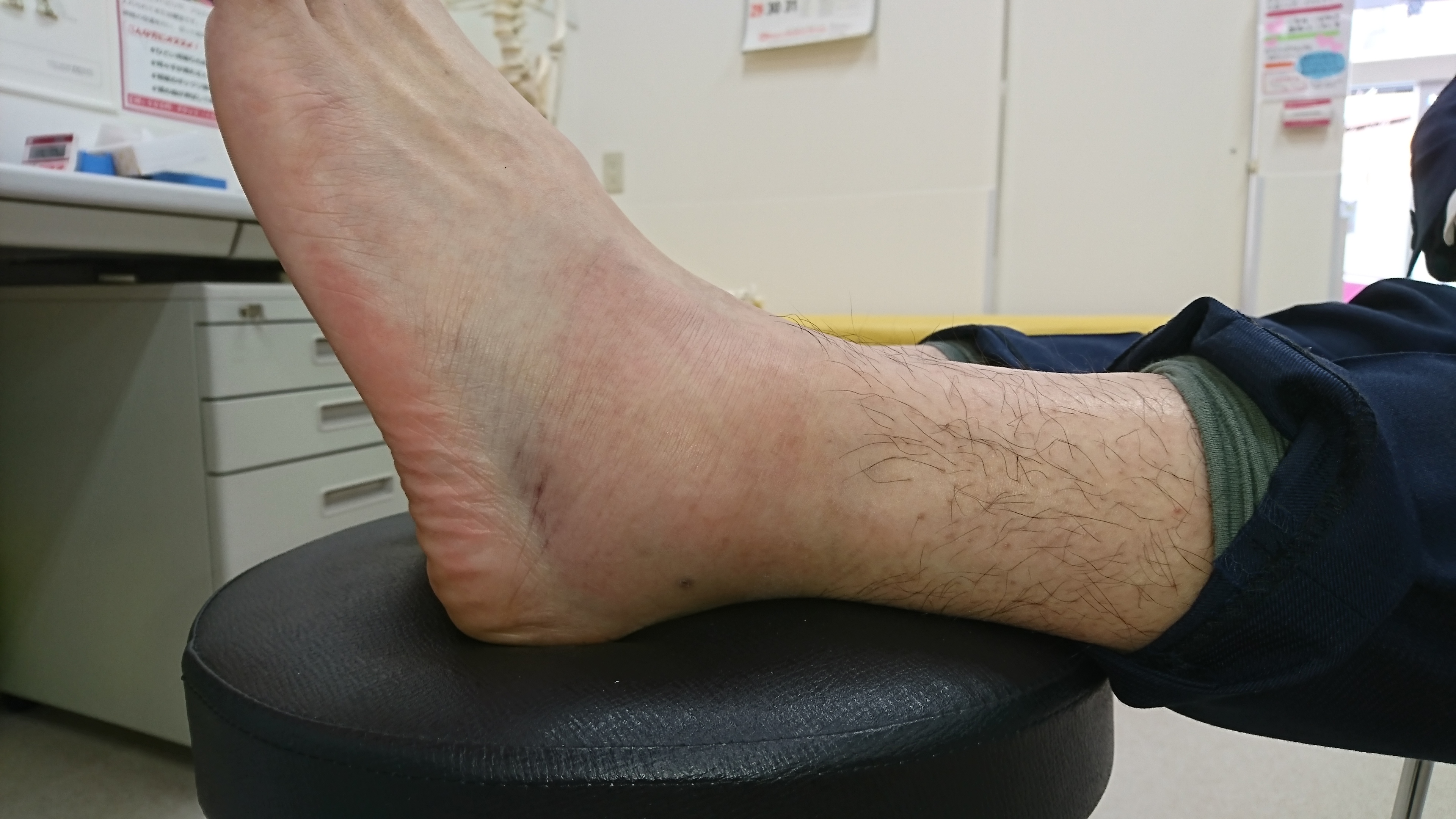 足関節捻挫は内反捻挫(外から内に捻挫)による損傷が多いですが、今回の症例では、反対の外反捻挫(内から外へ)の損傷で来院されました。