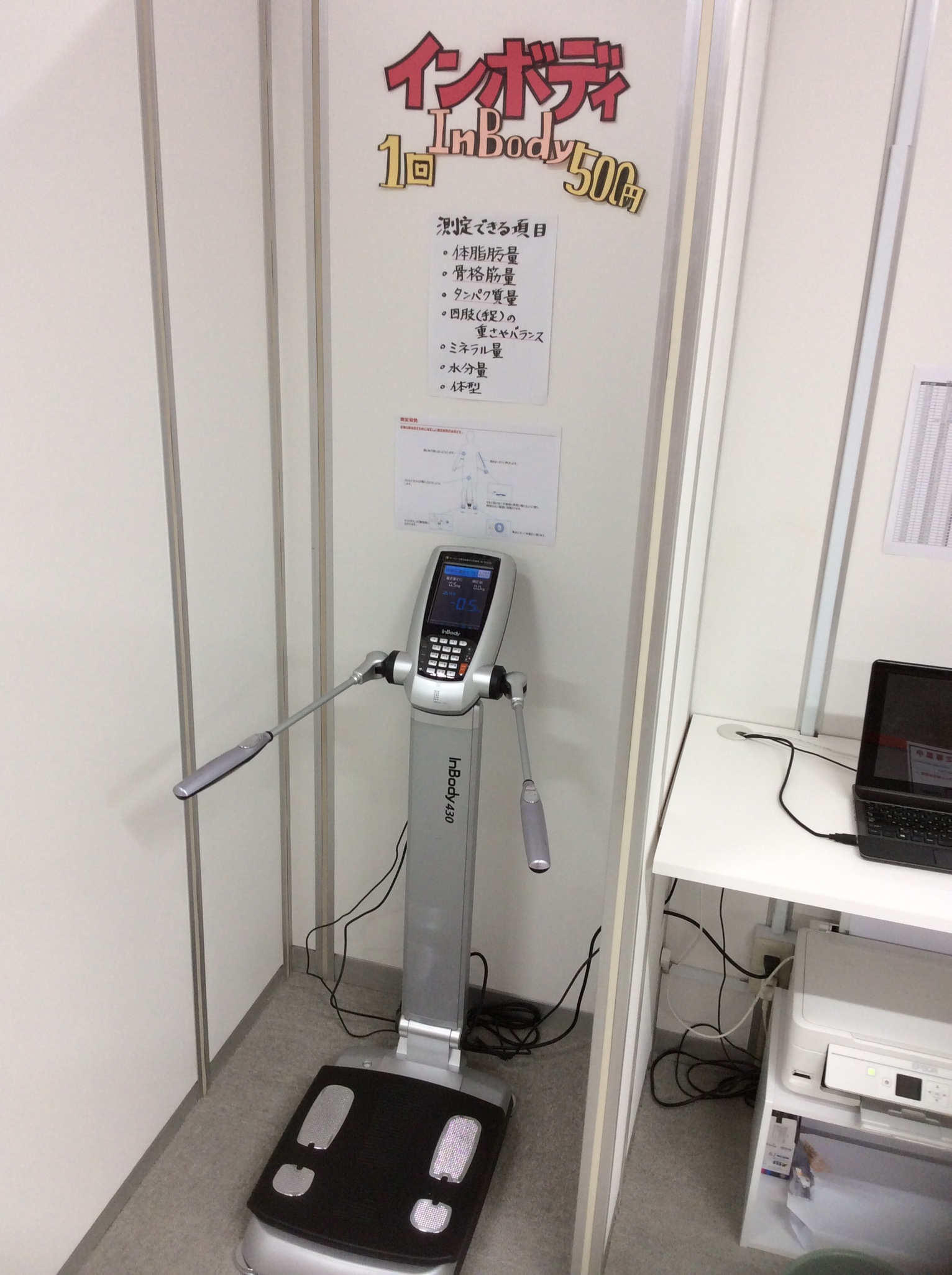 「イン・ボディー」と言う機械で栄養状態、筋肉量、脂肪量の測定を行っています。