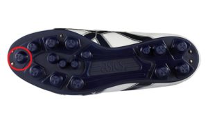 アメフト、ラクロスのスパイクは赤丸のところがひとつ多いです!