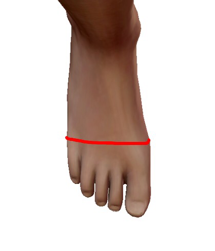 親指の付け根と小指の付け根の一番膨らんだところが合ってないと外反母趾やアーチの低下の原因になります。
