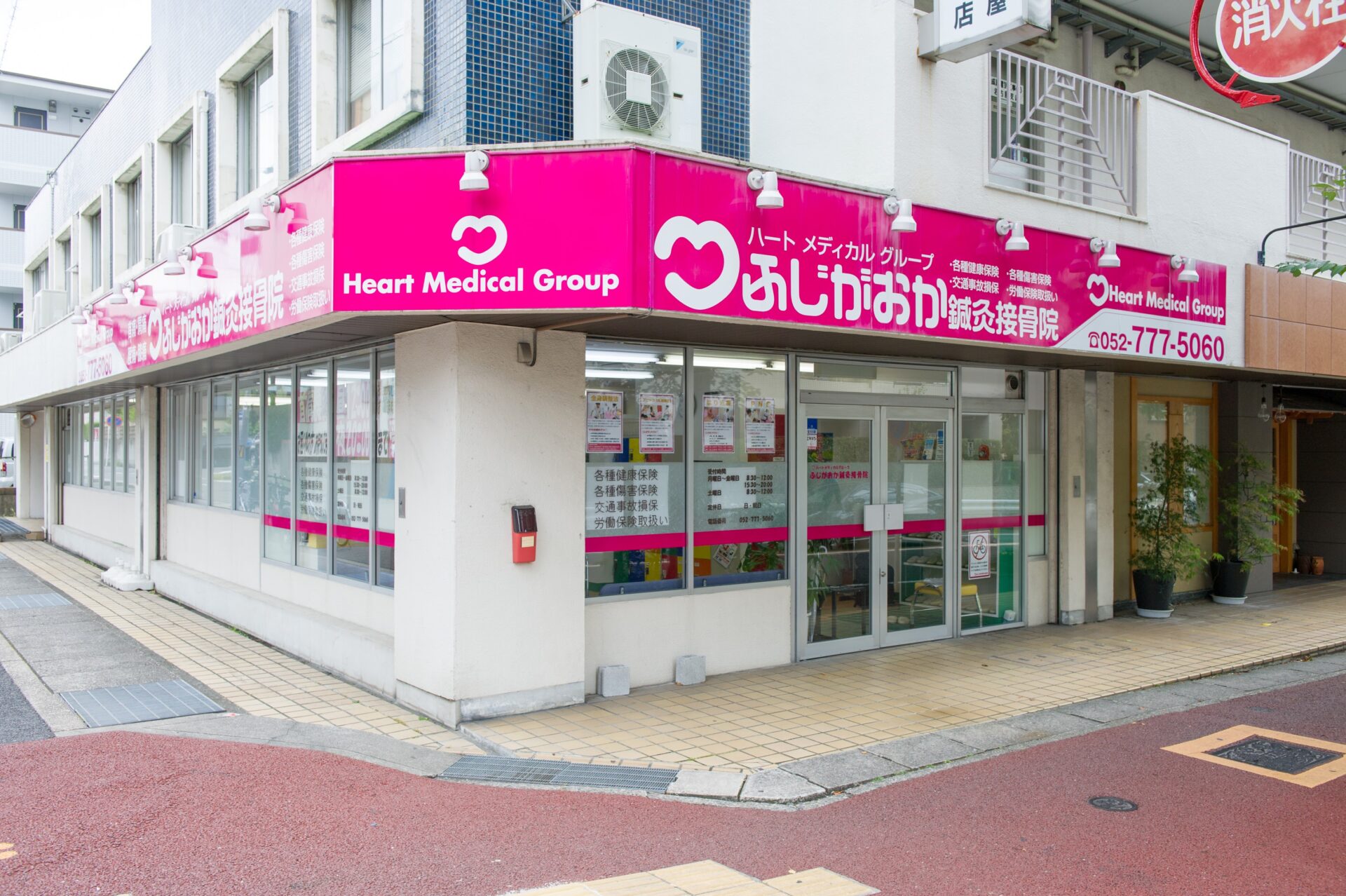 名古屋市名東区、地下鉄藤が丘駅すぐの『ふじがおか鍼灸接骨院・整体院』は、名古屋市を中心に20院の鍼灸接骨院を展開するハートメディカルグループの接骨院・整体院です。