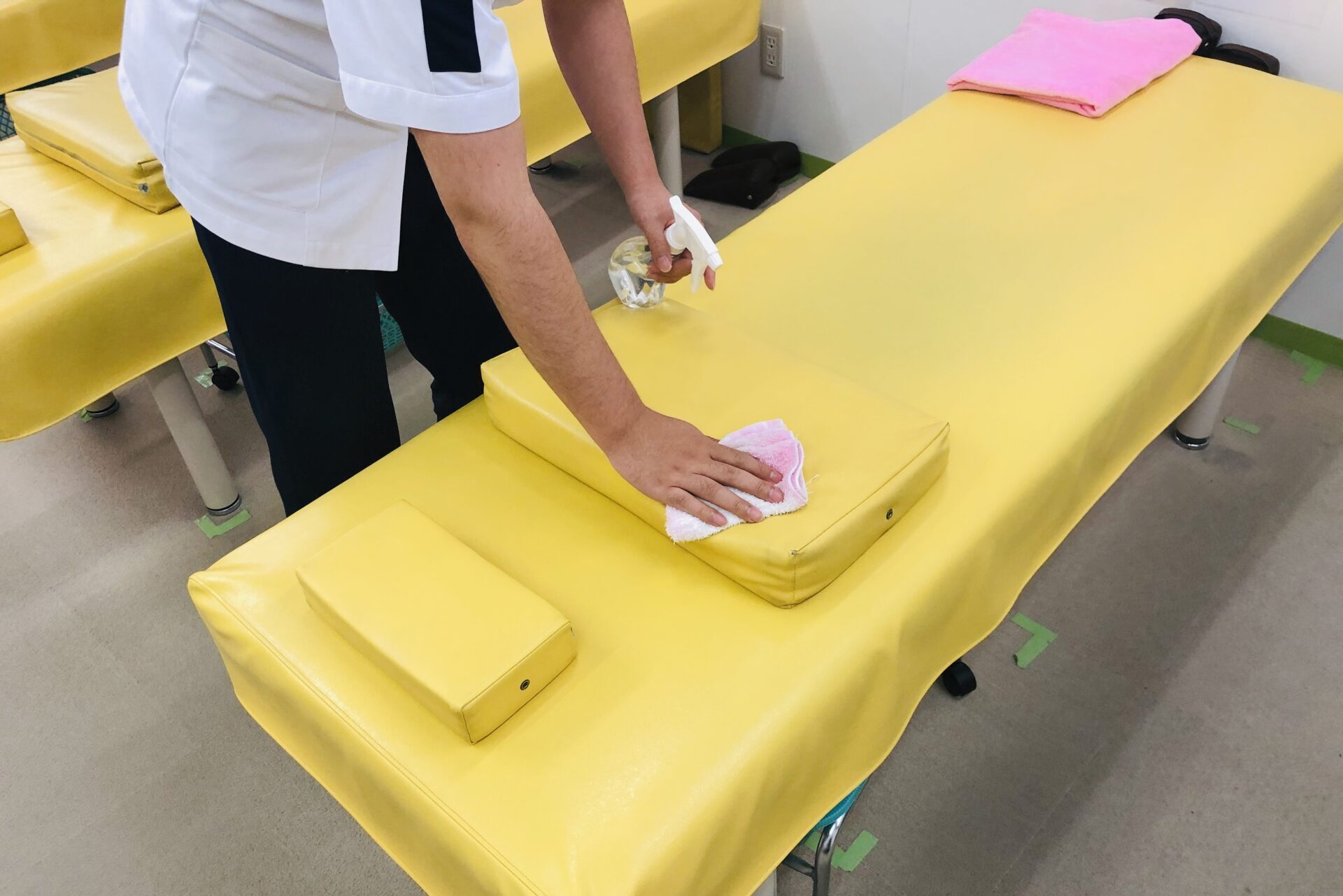 - 施術ベッド、ドアノブ、手すり、イスなど接種機会の多い箇所の頻繁な消毒