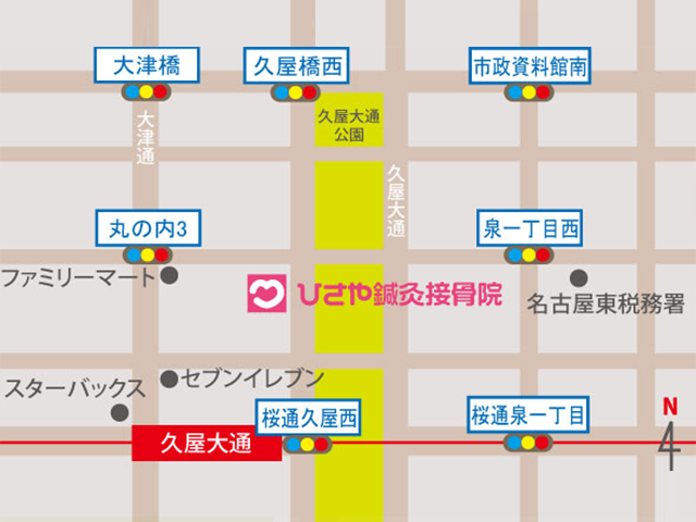 名古屋市中区、久屋大通駅すぐの『ひさや鍼灸接骨院・整体院』は、名古屋市を中心に20院の鍼灸接骨院を展開するハートメディカルグループの接骨院・整体院です。